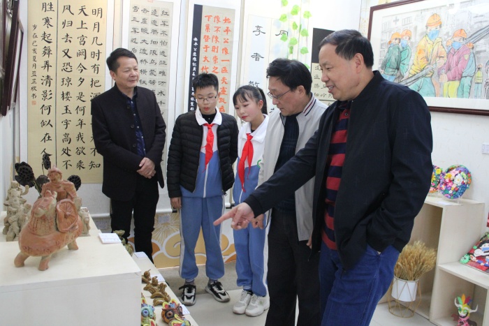打印 |2011年始,中山市各校常态化开设丰富多彩的社团活动为学生构筑了精彩的逐梦乐园,值项目实施十周年之际,市文明办和市教体局为展示全市少年宫社团美育成效。12月19日,在中山市博凯小学开展了中山市学校少年宫成果展,镇南小学、海洲第二小学和曹二小学三校联合代表古镇镇参加这次成果展示,古镇镇教育和体育事务中心邓秋元主任、海洲第二小学陈富权校长、蔡淑娴副主任以及镇南小学的刘晓岚副主任、卢雅仪老师参与了此次活动。其中镇南小学的陶艺社团学生作品在这次展览中精彩呈现。