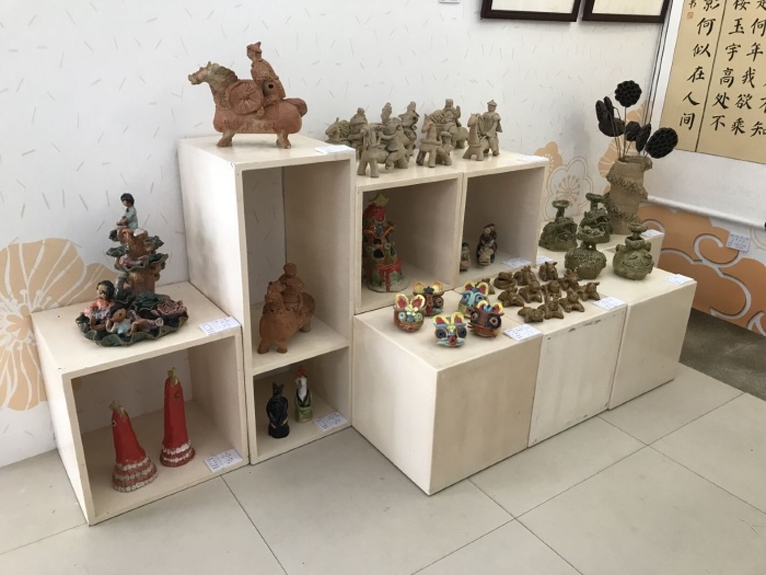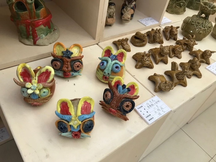 这次展览以传统文化为基调,镇南小学将陶艺和曹二小学的超轻粘土和国画、海洲第二小学的书法和软陶融合在一起。其中,镇南小学陶艺社团学生展出的作品有《十二生肖》、《兵马俑》、《布老虎》、《童年趣事》、《油灯》等等,均为社团历届精品之作,作品题材多样,造型富有童趣,为省市镇各级领导和各镇区兄弟学校教师展示了丰富的陶艺社团成果,展现了镇南陶艺学子较高陶艺技艺水平,引来观众驻足欣赏和了解社团开展情况,屡受领导和老师们的好评和肯定。三校作品洋溢在美感、创新和想象的氛围中,展现出古镇镇美育工作的蓬勃生命力!
