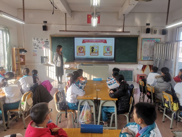 今年刚好是国家实施颁布《反恐怖主义法》五周年,在学习中同学们知道了这是国家规定的一部法律,人人都要遵守,人人都要学习,从小知道法律是每个人都要遵守的,还要不断地学习,利用法律保护自己的人身安全。