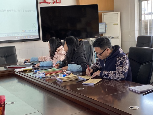 最后一项议程就是英语常规检查,李培新副校长和科组长苏丽梅老师检查英语科组老师的备课本以及听课本,中年级备课组长刘璐老师以及高年级备课组长何美玲老师对各年级的英语作业进行检查。