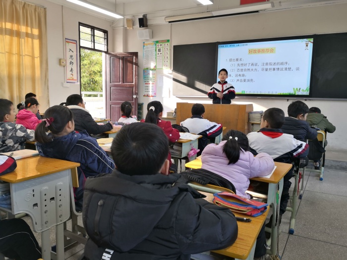 在课堂上,学生首先在各小组里进行演讲,然后推荐一名同学与其它小组的同学进行比赛。其中徐承睿同学演讲《负荆请罪》,任纪霖同学演讲《草船借箭》,何嘉乐演讲《望梅止渴》和黄致远同学演讲《吴三桂引清军入关》深得同学们喜爱,他们语言表达流利,声音响亮,表情丰富,能够适当地加上动作,被评为班级“故事大王”,获得了李金城同学家长赞助的奖品。