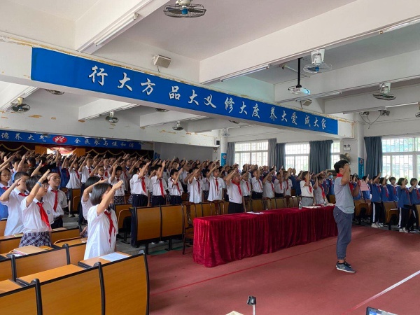 2020年6月8日星期一下午第7节课,海洲初级中学举行了隆重、热烈、有意义的初一少先队离队教育仪式,给队员留下了美好的印象,使队员们明白了离队不是少先队员组织生命的终点,而是迈向更高更强目标的新起点。