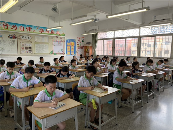 英语组从“英语书写大赛、英语单词听写大赛、英文单词大比拼”三个环节策划了四个年级的不同系列活动。现场气氛活跃,秩序井然,同学们们认真思考,沉着答题,内容为本学期课本上的四会单词,外加少部分能力词汇。孩子们凭借着自己的词汇知识积累,从容不迫地完成了内容。竞赛不仅丰富了孩子们的学习生活,同学们从中体会到了学习英语的乐趣,也让枯燥的期末复习变得生机勃勃,学生们你追我赶,提升了学生对词汇记忆的兴趣。习惯性地积累单词能反映一个人认真良好的学习习惯,而且词汇是构成语言的最基本材料,是英语的根基,始终贯穿于英语学习的整个过程,是其他方面学习的根本性前提。希望通过本次活动,能够让同学们深刻意识到记忆单词的重要性,养成良好的学习英语的习惯。