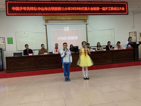 12月17日,中国少年先锋队中山市古镇镇曹三小学2019年代表大会(简称少代会)在曹三小学阶梯室隆重举行。本届少代会是在少先队改革背景下,举行召开的一次十分重要的大会。会议选举诞生新一届大队委和审议通过了中山市古镇镇曹三小学第一届少工委。出席本次大会的领导嘉宾有中山市古镇镇团委专职团干麦家浚、古镇镇教育事务指导中心德育专干、镇少工委总辅导员汤成宗、曹三小学校长蔡汝浩等。