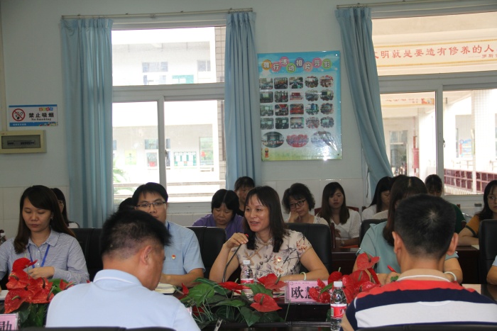 座谈会上,全体人员首先观看了四沙小学宣传片,领略了该校儒雅教师风采和文雅学子的精神风貌。接着,校长欧慧芳代表全体老师感谢党委政府亲切关怀,随后汇报了学校始终坚持党的正确领导,全体教师共同努力,在教育教学、学校管理、校园建设、教师成长等方面取得的成绩、存在的问题和未来的发展方向,表示了该校老师将会不忘初心,牢记使命,为教育事业的发展多作贡献的信心和决心。