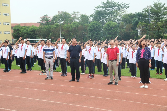 为了庆祝伟大祖国母亲的生日,同时也为了能让全体师生过一个平安、愉快的国庆小长假,9月28日,横栏中学全体师生集中运动场,举行了“我爱国,我报国,我强国”欢庆祖国71华诞暨法制安全教育活动。