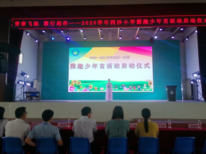 为进一步全面推进素质教育,努力提高学生综合素养,结合学校实际,2020年9月18日下午,四沙小学举行了雅趣少年宫社团活动启动仪式。横栏镇教育事务指导中心德育专干冼伟勋、四沙各村委会分管教育的领导、家长委员会主要成员、学校全体行政和五、六年级全体师生在体育馆主会场参加了启动仪式,其他班级师生在课室通过钉钉直播收看参与。