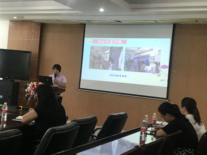 工作室主持人许炽老师先向考核组汇报工作室三年来的课题研究、成员提升和工作室三年来所获得的成果,并反思了工作室及成员存在的问题,提出了今后的工作思路。她还指出,作为一名班主任不能只满足于解决班级出现的问题,更重要的是会去寻找引起问题的原因,思考如何从源头上解决班级问题,达到教育学生的目标。