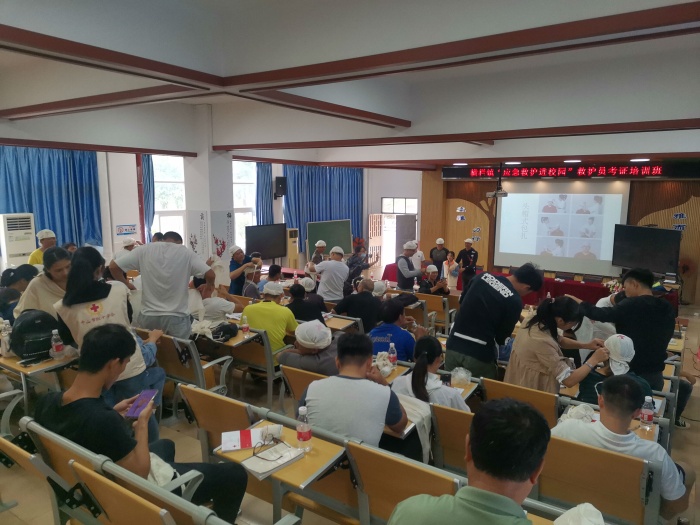 活动开始,中山市红十字会老师给大家发放了急救用品,并介绍了使用方法。随后,红十字会专职培训老师结合理论知识和实际救护技巧对生活中遇到突发状况急救、徒手心肺复苏、溺水紧急救护等内容作了详细的讲解。培训老师和参会的老师们在现场展开了有趣又令人印象深刻的互动,使大家对各项救护技巧有了深入的了解和认识。课程的最后,培训老师还开展了考核。两天培训的考核不仅有笔试还有实际操作,通过考核大家能够化理论为实践,更好地掌握知识要领。