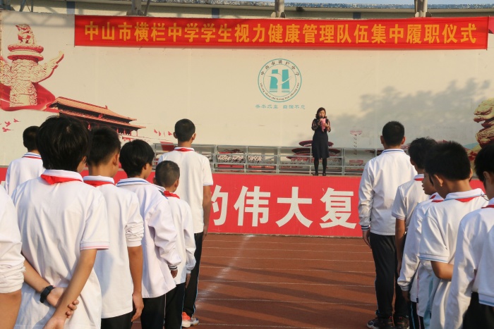为进一步推进学校学生近视防控工作,让广大师生了解导致近视的原因、危害以及预防近视的方法等有关常识,落实主体责任,10月19日下午,横栏中学全体师生集中运动场,成功举办了学生视力健康管理队伍集中履职仪式。