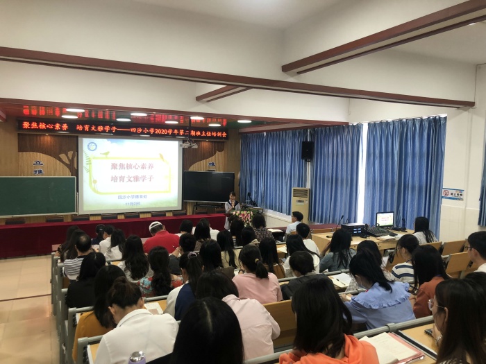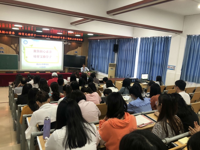 打印 |为了让班主任进一步了解学生发展核心素养的三个方面、六大素养和十八个基本要点,全面落实学校培育文雅学子的工作目标,经学校德育处筹划, 11月2日上午,四沙小学在阶梯室举行了题为“聚焦核心素养 培育文雅学子”班主任培训会。