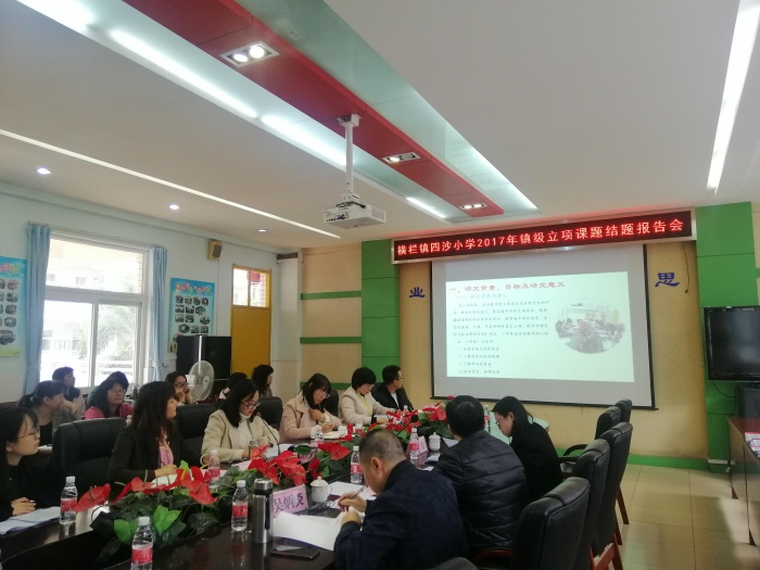 报告会由横栏镇教育和体育事务中心王春明专干、吴炳炎专干、高山老师一行组成的专家组评审,四沙小学欧慧芳校长及四沙小学课题组成员出席报告会。