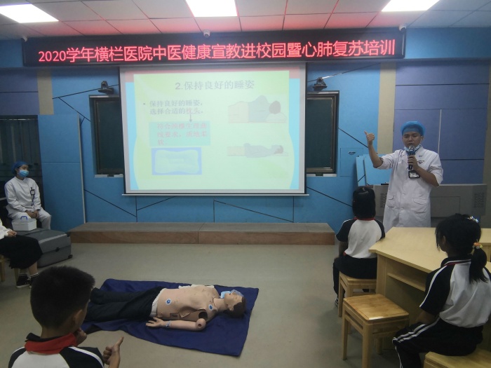 2020年11月17日下午,横栏镇三沙小学举行了中医健康宣教进校园暨心肺复苏培训活动,来自横栏医院中医康复科的宁平华主任和谢医生主持了培训,三沙小学全体行政、校医、四年级至六年级的全体班主任和部分学生参加了活动。