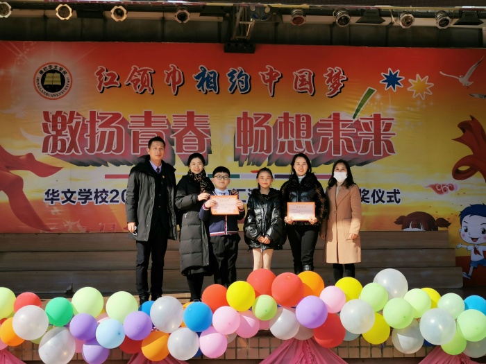 然后进行的是颁奖仪式,贾如意副校长、汪芳副校长等现场为学校“最美志愿者”及获得“华文好少年”称号的学生们颁发证书并合影留念。