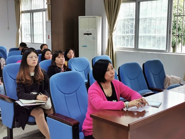 首先,张惠连老师向老师们讲述了本次跟岗学习的经历与收获;接着,梁群英老师组织老师们观摩清英外国语学校詹莉萍老师执教的课例《狐狸和奶酪》;最后,梁群英老师结合课例,开展了题为《“三学、三展”课堂教学模式》专题讲座,重点分析和讲解了 “三学”、“三展”的课堂教学模式,强调“三学”、“三展”课堂教学模式不仅能促使学生快乐学习,还能真正地培养学生的各项能力。