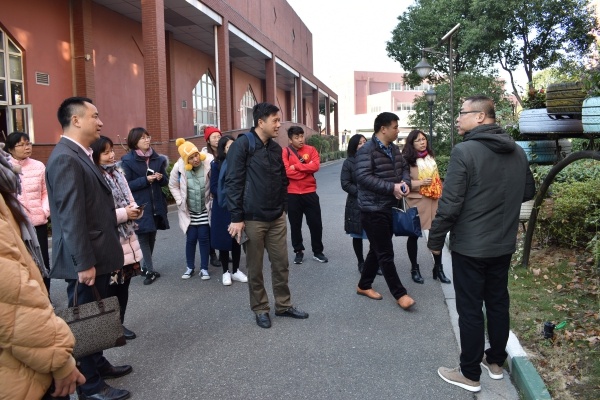 上午9点,横栏镇第二小学吴国梁校长带领教师团队到达武进清英外国语学校,在武进清英外国语学校高世军副主任的带领下,第二小学的教师们参观了美丽的清英校园。高副主任介绍了富有特色的清英儿童地球村的物型环境建构和中国汉字传统文化建构。