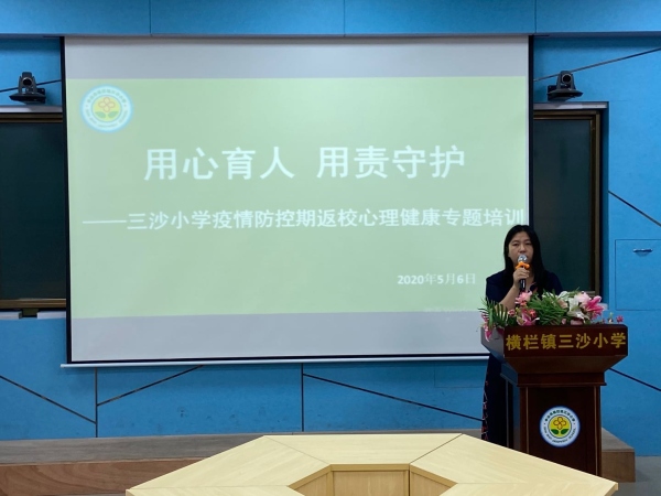 开学在即,为了进一步做好疫情防控期间师生心理危机的排查和干预,有效地预防和疏导疫情对师生及家长造成的负面影响,5月6日下午,横栏镇三沙小学组织全体教师开展了以“用心育人,用责守护”为主题的疫情防控期返校心理健康专题培训。培训由学校德育处张爱玲主任负责。