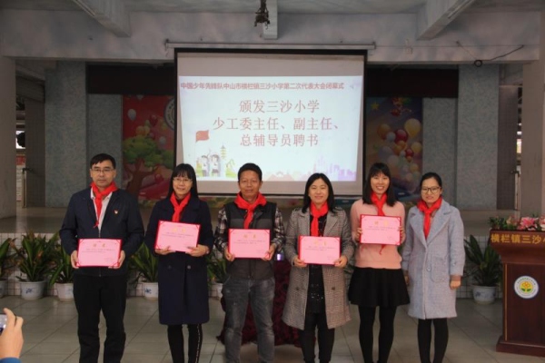 12月27日下午,横栏镇三沙小学召开了少先队代表大会,并选举成立三沙小学第二届少工委。横栏镇少先队总辅导员及学校大会代表101人出席了本次会议。