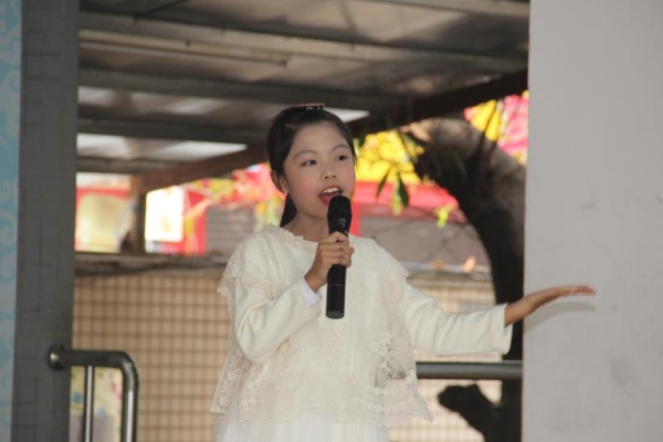 首先由一(2)班黄巧蓝同学带来的一首歌曲《海浪花》拉开了比赛的序幕,优美的旋律,动听的嗓音让观众仿佛置身于无忧无虑的童年,感受着那份纯真与美好;二(4)班熊灿荣同学的《爸爸妈妈听我说》展示了一幅亲情的画卷,让观众体验到家庭生活的温馨。三(4)梁旖淇同学的《你笑起来真好看》表演大方,嗓音清新甜美,让人陶醉。一首首悦耳动听的歌曲如一幅幅七彩的画卷缓缓呈现在观众们的面前,让观众身临其境。一阵阵热烈的掌声把比赛推向一个又一个的高潮。这是同学们才艺的较量,更是信心和勇气的比拼;这是个性的张扬,活力的绽放。歌声从这里传递,音符从这里飘扬,激情从这里点燃,梦想从这里起航。