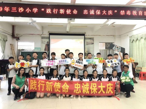 为了呵护青少年健康快乐成长,推动绿色无毒校园的营造与发展,迎接中华人民共和国成立七十周年大庆,9月25日,横栏镇三沙小学开展了以“践行新使命,忠诚保大庆”为主题的禁毒教育活动。