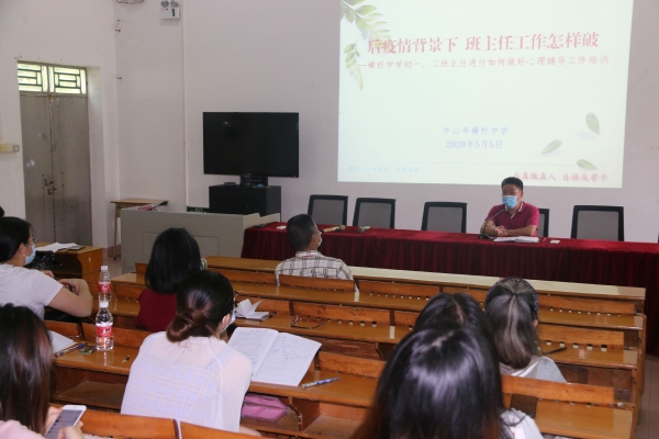 横栏中学自开展线上教育至学生返校期间,为做好疫情防控期间心理危机干预和社会氛围引导,为有需要的师生、家长提供科学、规范、专业的心理服务,有效预防、疏导疫情对师生及家长的负面心理影响,多渠道开展师生心理健康辅导工作,确保师生心理健康。3 月 31 日上午学校通过网络课堂对全校学生开展了主题为“身在隔离,心向世界” 的网络主题班会活动。4月 27 日上午,学校举办心理健康教育培训班,李剑婷老师引导班主任做好学生疫情期间和疫情过后的心理辅导工作。第一批返校的初三年级班主任等 30 人参加了培训。5月 4 日晚上 9 点,横栏中学通过网络对全体教师进行心理健康教育培训。陈永清老师指出,在疫情背景下重返校园,重中之重是要做好防疫工作,但师生的心理建设也同样重要。返校复学后,教师由于既要防疫又要教育教学,工作繁重,压力大,容易出现身心不适,所以要学会自我心理调适和自我关怀,呈现给学生一种积极向上的精神风貌。复学返校后,学生既要做好防护,又要适应新的学习生活模式,毕业班学生还有应考的压力,会面临各种挑战,需要掌握好心理应对关键。孩子复学返校后,家长们在开心的同时,也会有各种担心、担忧,产生焦虑、烦躁等情绪。学校、班主任和科任老师要注意安抚好家长情绪,在与家长交流中多换位思考,必要时还要对家长进行心理调适。