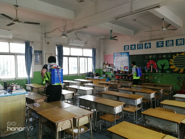 在刘华山常务副校长的精心组织下,老师们按照学校的工作部署,主动利用下班之余,按比例兑制杀蚊药液后,对学校进行了一次全面的消毒灭蚊行动。虽然消毒灭蚊药的气味十分难闻,但老师们却一丝不苟,认认真真的完成自己的任务。老师们严格按照学校卫生消毒管理的标准规范操作,对学校各个教室、办公室、走廊、卫生间、图书室、功能室等公共场所进行了无死角消毒。