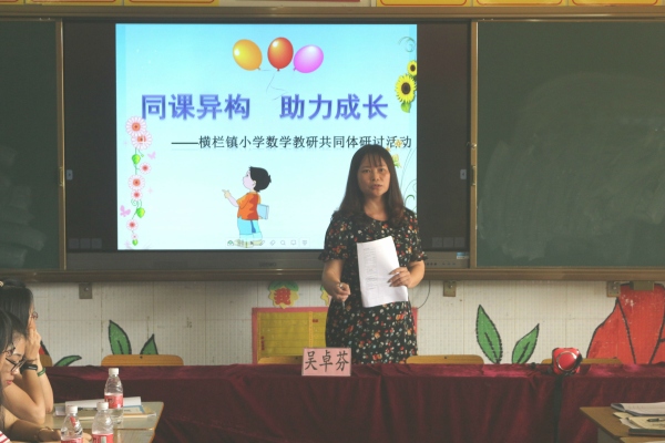 最后,横栏镇小学数学中心教研组组长黄灿华对此次活动进行了总结,他指出要利用情境引导学生理解概念性知识;在重点知识的理解方面,可以运用多媒体辅助教学,采用动手操作和小组合作的形式,充分调动学生的积极性,让他们自主探究。通过这样相互学习,相互交流,在不断地思思维碰撞中,激发创新的火花,达成最优化的教学方法,从而提升横栏镇青年教师的教学水平。