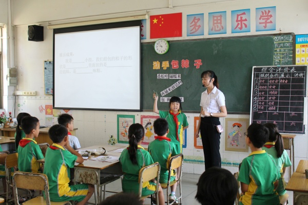 本次研讨活动分三个环节进行。首先由横栏港源学校刘莹老师进行课堂教学展示,刘老师结合即将到来的端午节,设计了一堂《动手包粽子》的综合实践课。在精彩巧妙的教学环节中,在寓教于乐的教学氛围中,同学们动口、动手又动脑,小组成员合作一起实践操作,学习包粽子。课后,刘莹老师就自己所设计的课堂教学活动进行了反思,提出了自己对三年级综合实践活动教学的认识以及自身的不足之处。接着,各校综合实践活动老师代表分别对刘老师的课堂教学进行了评价,充分地肯定了刘老师教学准备很充分,选择的课题贴近学生生活,在教学中条理清晰,重点突出,注重培养学生参与课堂的兴趣及动手实践能力,并对教学当中出现的实际问题提出了自己的意见和建议。