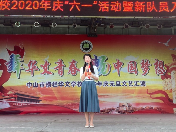 为增强广大少先队员组织意识,明确成长目标,培养学生的主人翁意识,继承和弘扬少先队光荣传统,使华文学子度过一个快乐而又安全的节日,5月29日下午,华文学校德育处组织举行了华文学校2020年庆六一活动暨新队员入队仪式。本次活动由德育处荀丹老师主持,横栏镇财政分局廖嘉红局长、横栏镇教育事务指导中心吴炳炎专干、华文学校谢春生校长、肖礼发副校长、贾如意副校长出席了本次活动。