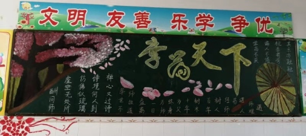 自通知下发之日起,各班班主任都积极响应,克服工作忙、时间紧等困难,带领学生精心设计。各班学生在老师的带领下纷纷自主查找资料,积极参与,设计版面,画图写字,仅用了三、四天时间,一期主题鲜明、图文并茂、布局美观的黑板就报展现在广大师生面前。
