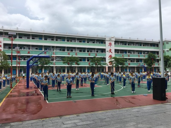 6月18日上午,黄圃镇新地中心小学一行5人在吴国有校长、邓蛟龙主任的带领下来到华文学校参观交流。华文学校谢春生校长率领校行政班子热情的接待了他们。