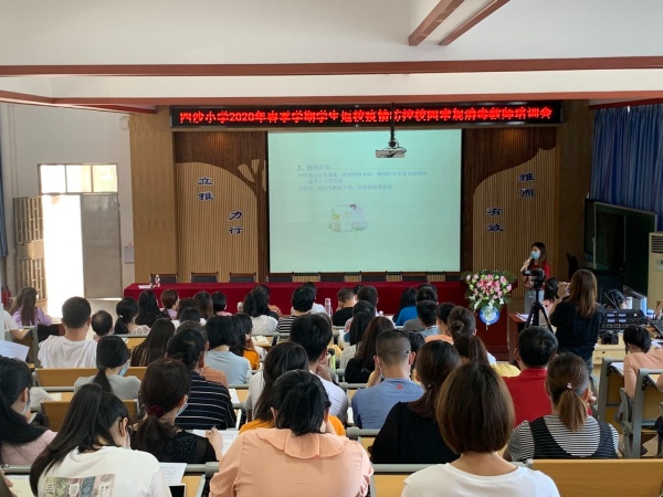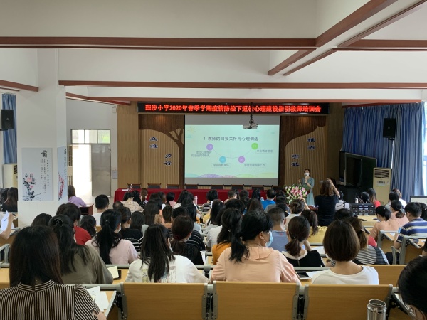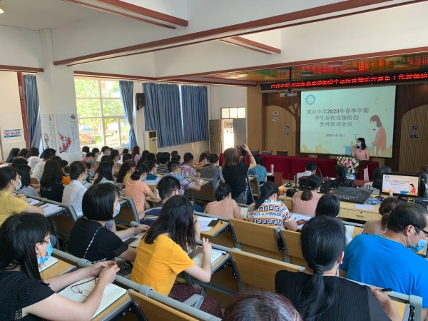 打印 |为进一步落实好疫情时期学生返校工作,保障师生安全返校,给予全体师生积极、正面的心理指引,2020年5月6日下午,四沙小学在阶梯室举行了2020年春季学期学生返校疫情防控准备工作暨返校心理建设指引教师培训会。培训由德育处副主任黄丽君主持,全体教师参与。