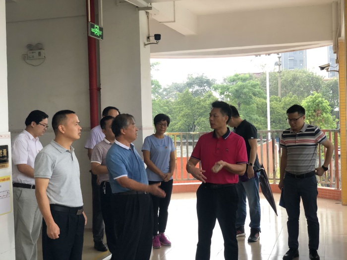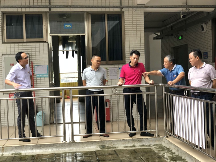 9月15日上午9时,南头镇党委委员薛焯明,镇宣传办公室(教体文旅局)主任(局长)姚华, 镇教育和体育事务中心主任谢桂华,宣传办(教体文旅局)综合股股长洪爱华和镇文体教育局吴剑华老师一行五人冒雨到南头镇初级中学视察并指导工作。南头镇初级中学校长卢新泉、副校长梁红令、副校长毛贤伟和学校总务处主任李忠汉全程陪同视察。