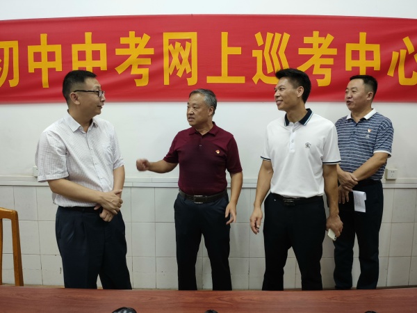 首先,徐宁军书记仔细询问了中考期间学校考务安排、学生考前学习情况等,表达对中考工作的关心,对教师们辛勤工作表示慰问。随后,卢新泉校长从考场的布置、考场设备实施保障、考生数量等方面向徐宁军书记一行汇报了南头镇初级中学中考准备工作的详细情况。