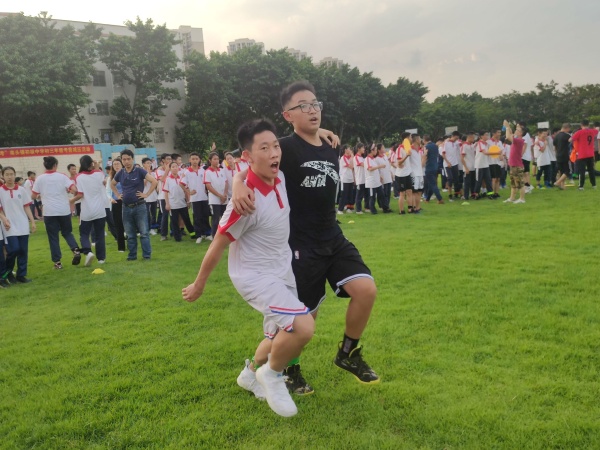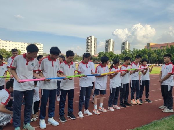 首先,初三年级的学生们在班主任的带领下,怀揣期待与热情,从教室下到操场,在跟班老师和班干部的协助下,以班级为单位分四组开展“珠行万里”、“夹板接力赛”活动项目。活动由此拉开了序幕,妙趣横生的比赛环节营造了轻松愉快的氛围,也让学生们缓解紧张情绪,尽情地投入到活动中来。