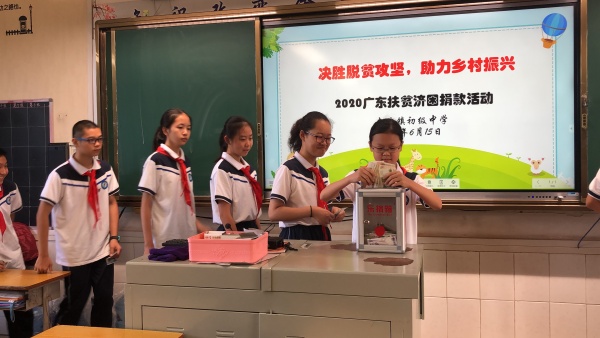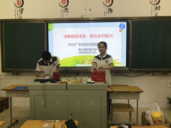 2020年是全面建成小康社会目标实现之年,是全面打赢脱贫攻坚战收官之年,也是“广东扶贫济困日”活动10周年。根据省委、省政府、市政府的部署,今年“广东扶贫济困日”活动的主题是“决胜脱贫攻坚,助力乡村振兴”。6月15日上午,南头镇初级中学利用升旗仪以班级为单位开展了2020扶贫济困捐款仪式。
