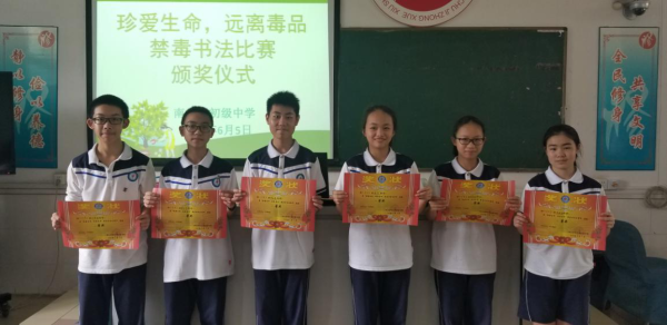 经过评委老师们的认真审核,最后评出了一等奖4名,二等奖6名,三等奖10名。由德育处宋维华主任为获奖的同学们颁发了奖状,以此激励同学们在养成良好书写习惯的同时,也要将禁毒种子深植心中,将禁毒进行到底。