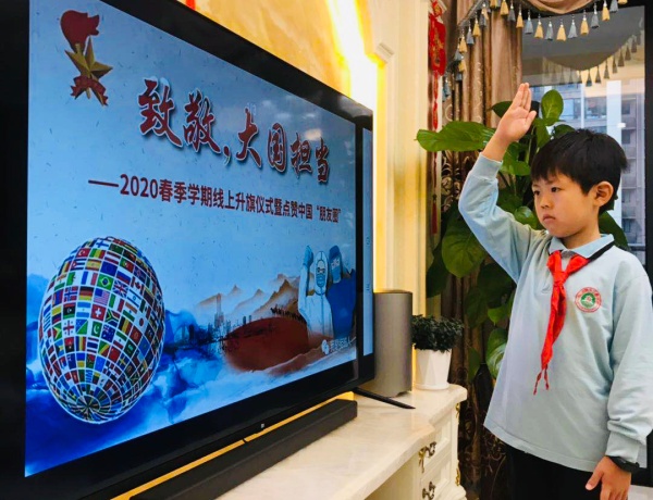 春风吹绿了大地,春花芬芳了心灵。在全国人民的团结下,新冠疫情呈好的态势令人欣喜。在病毒肆虐,全球谈疫变色的危急时刻,中国大爱的胸怀让世界温暖,展现出了大国担当之气魄和风范。不知不觉,已经是第七周,3月30日上午,南头三鑫学校全体少先队员相聚线上,共同致敬亲爱的祖国,致敬勇敢的人民,致敬伟大的时代,致敬“你中有我、我中有你”的世界!