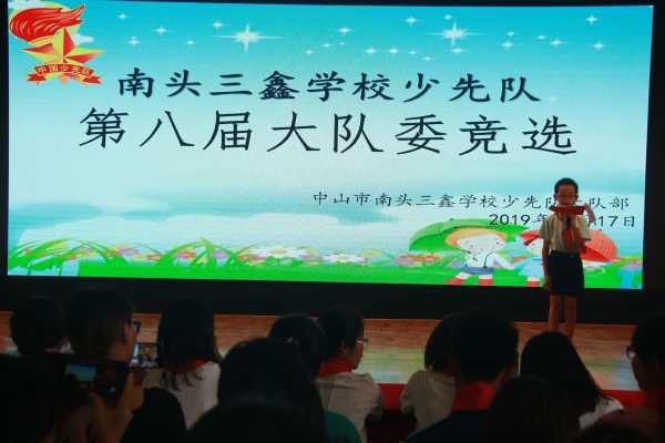 南头三鑫学校少先队第八届大队委竞选发布时间:2019-10-18 18:33 信息来源:本网站 浏览次数:22
