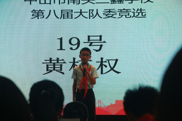 首先主持人介绍了南头三鑫学校少先队第八届大队委干部竞选活动前期准备情况。经过各中队的推选,共产生了21名大队委候选人。在今天的活动中候选人将通过竞职演讲为现场的师生展现他们想为少先队服务的热切希望。
