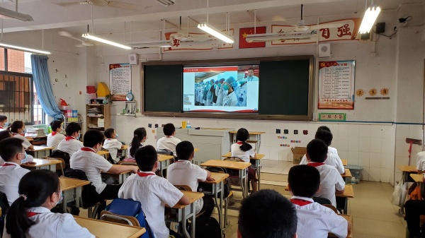 为了避免师生群体性聚集,充分保障师生的生命安全,此次复学典礼采取线上直播和现场参与的方式同步进行,每班派一名获奖代表现场参会,其他教师和学生在教室线上观看直播。