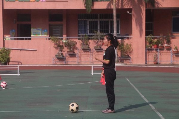 第二节课是由马秋洪老师带领对甫小学四(1)班的同学开展足球主题的体育课。教师、学生们英姿飒爽的身影,在操场上奔跑着、跳跃着,展现出了力与美的有机融合。