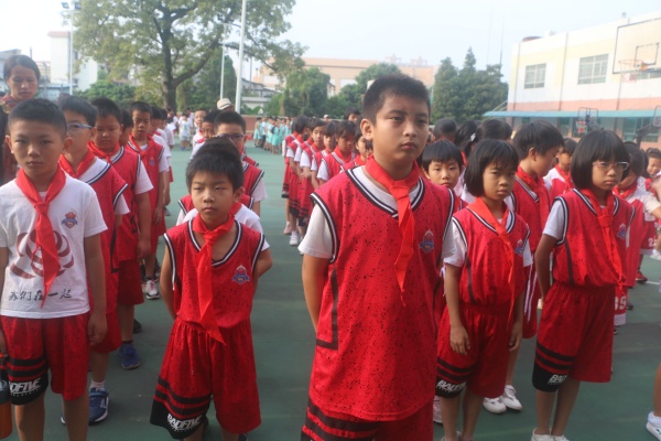 清晨,全校所有方队整齐划一地集中到学校的运动场,等待着篮球运动会的开始。首先进行的是全校师生共同参与的升旗仪式,国旗手一丝不苟,严阵以待,护旗手庄严肃穆,英姿飒爽!全校师生肃立,高唱国歌。紧接着,篮球运动会在凌军校长的致辞后宣布活动开始!整个运动场沸腾起来了!
