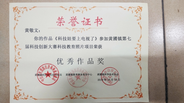 体验创新,快乐成长。从黄圃镇第七届青少年科技创新大赛传来消息,对甫小学在本届大赛中取得骄人成绩。这是学校一年科技创新成果的体现,更是学校全面推广科普教育结出的硕果。