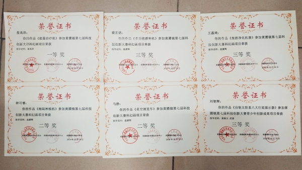 在本次大赛中荣获青少年创意项目一等奖的作品就是二(1)班梁嘉铭同学在优秀方案征集中被发掘的。来自四(4)班的盘禹泽科幻画项目一等奖作品《能量治疗机》充分体现了他的想象力也反映出扎实绘画基本功。还有荣获全镇优秀科技创意活动项目的《对甫小学科技运动会方案》更是全市首次将科技项目以运动会的方式呈现,提升了学生参与度,实现了人人参与的活动宗旨。此外,对甫小学科技教师多个项目在本次大赛中获奖,这充分体现了学校科技教师是勇于创新,敢于尝试的科技教育工作者。