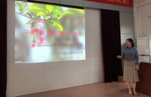2019年3月29日,黄圃华洋学校组织初中部150多名女生,在阶梯室开展以“以品修身,超越自我,活力青春”为主题的专题讲座。讲座由学校德育处李梦桃助理主讲,艾明淑主任出席了活动。