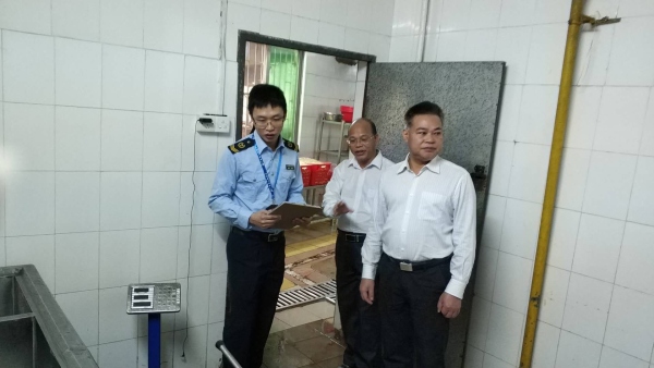 为加强校园食品安全的管理,保障学校的食品卫生安全,为学校教育教学工作保驾护航。2019年3月20日上午,黄圃镇政府、镇教育事务指导中心卫、镇食品药品监督管理所等单位组成的联合检查组一行来到黄圃华洋学校检查食堂的食品安全工作。肖晓校长、主管后勤的刘曙光副校长,陈玥主任陪同,检查组对学校食堂食品安全工作进行了全面检查。
