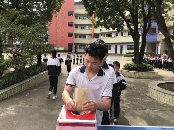 上午9点55分爱心捐款活动如时进行。艾主任主持用一段充满真情的开场白宣布捐款活动开始。接着,在《爱的奉献》那优美的旋律中,黄圃华洋学校全体行政、老师们带头献出自己的一份爱心。在学校行政和老师们的爱心捐款行为的影响下,黄圃华洋学校两千多名学生也以班级为单位,各班班长代表上台将一个个沉甸甸的、汇聚全班同学爱心的信封放进捐款箱,台下一双双真挚的眼神和连绵不断的响亮掌声,也在表达爱、传递爱。大家用自己的实际行动诠释了一份奉献,一份感恩。