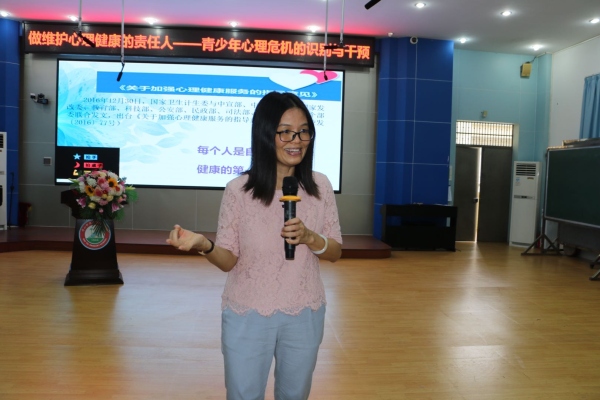 她结合科学数据让教师们认识青少年的心理健康状况,从中山市中小学生心理健康状况、令人关注的青少年心理健康问题案例、心理危机预警信号出发,深入浅出的分析和讲解,强调要做好学生的普访,及时掌握学生动态。