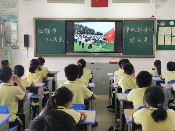 活动中,各中队辅导员通过播放视频组织队员们学习中国共产党的建党历史和辉煌发展历程,感受到共产党员面对国家的前途、民族的兴亡、人民的生死之紧要关头,挺身而出,用生命和热血来诠释对党的忠诚,对祖国和人民的热爱,深切体会到建党之艰辛,现今繁荣昌盛的局面来之不易,激发队员们爱党、爱国的革命情怀。最后,辅导员号召队员们共同立下宏愿:紧紧跟随党的领导,热爱祖国,刻苦学习知识,坚定理想信念,磨练坚强意志,锻炼强健体魄,为实现中华民族伟大复兴的中国梦时刻准备着。